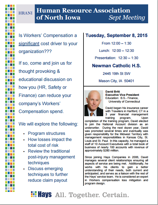 September Meeting: Worker's Compensation Presented by the Hayes Company