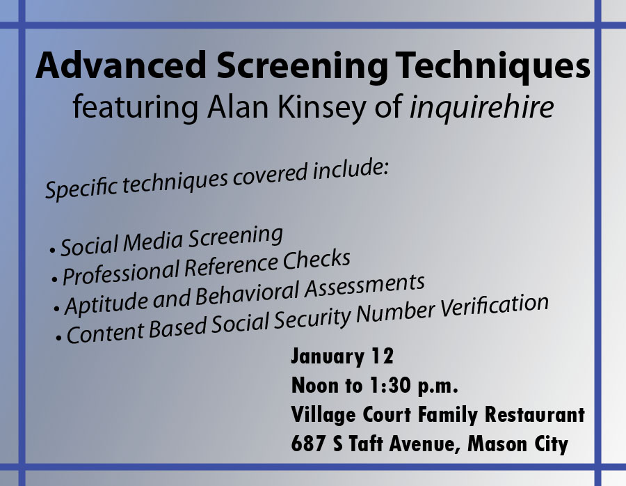 Home › Meetings & Events › 2016 › January Meeting: Advanced Screening Techniques by Alan Kinsey of inquirehire